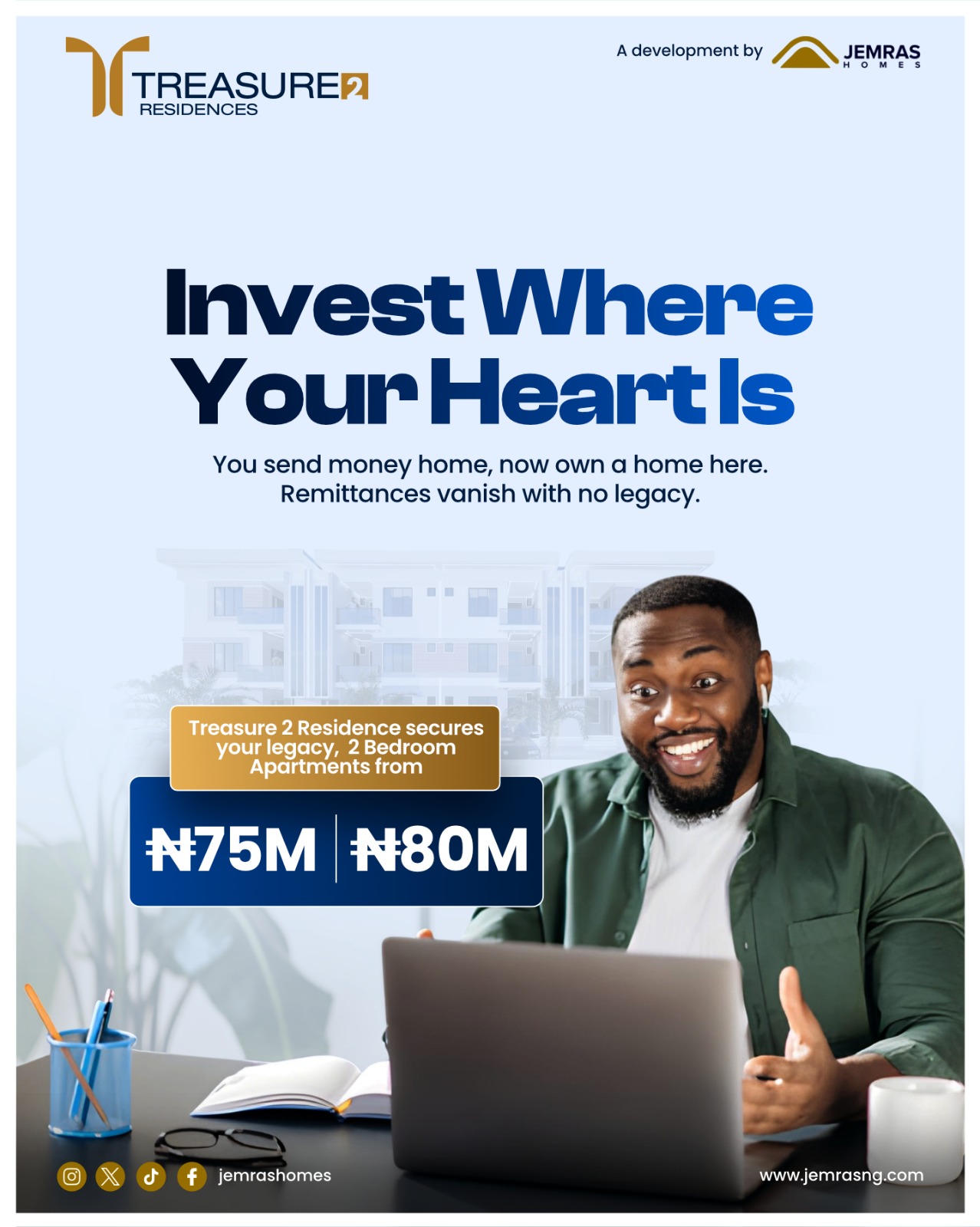 Treasure 2 Residence, Abijo GRA, Lekki is a premium real estate development designed for modern living and long-term value. Strategically located within the serene and rapidly developing Abijo GRA, the project offers luxury 2-Bedroom Apartments with top-quality finishing, spacious layouts, and contemporary design. Residents will enjoy proximity to Lekki’s prime hubs, schools, shopping centers, and business districts, while benefiting from a secure and well-planned environment. With prices ranging from ₦75M – ₦80M, Treasure 2 Residence is not just a home but a solid investment opportunity. It combines comfort, prestige, and lasting wealth for discerning buyers.