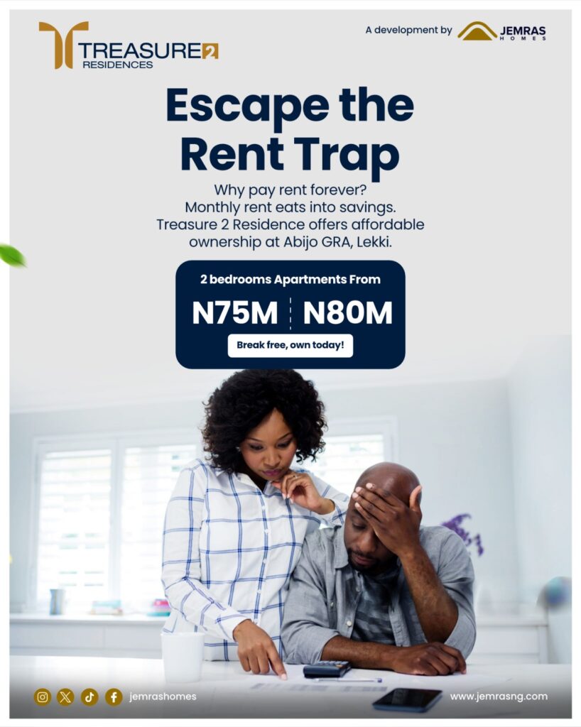 Treasure 2 Residence, Abijo GRA, Lekki is a premium real estate development designed for modern living and long-term value. Strategically located within the serene and rapidly developing Abijo GRA, the project offers luxury 2-Bedroom Apartments with top-quality finishing, spacious layouts, and contemporary design. Residents will enjoy proximity to Lekki’s prime hubs, schools, shopping centers, and business districts, while benefiting from a secure and well-planned environment. With prices ranging from ₦75M – ₦80M, Treasure 2 Residence is not just a home but a solid investment opportunity. It combines comfort, prestige, and lasting wealth for discerning buyers.